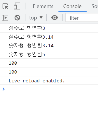 console.log("숫자형 형변환" + Number(num));