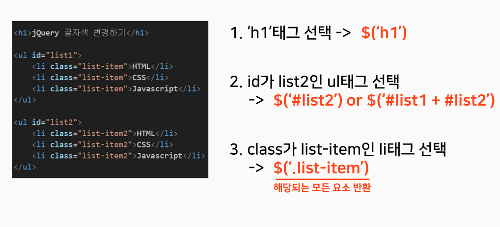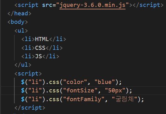css("fontSize" , "50px") ---> 글자폰트 사이즈는 50픽셀