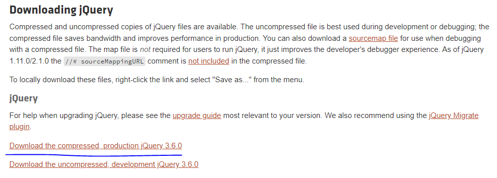 -사이트 오른쪽 상단에 Download jQuery 클릭